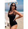 Stahovací plavky mají střední stahovací efekt. Širší ramínka a čtvercový výstřih jsou skvělá pro větší prsa, kterým zajišťují dostatečné pohodlí. Přední zdobení dělá z obyčejných plavek estetický a neotřelý kousek. Ať už si vyberete jakoukoliv barvu, nejen, že vám schovají větší bříško, širší boky a povolený zadek, ale navíc vypadají skvěle. Oblíbíte si je tak, že už je nebudete chtít sundat. Navíc mají certifikát kvality a nezávadnosti Oeko-Tex® Standard 100