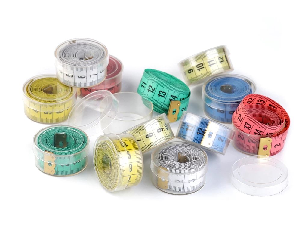 KREJČOVSKÝ METR V POUZDŘE - 150cm, Oboustranný, Materiál - plast, Různé barvy - výběr barvy bude náhodný