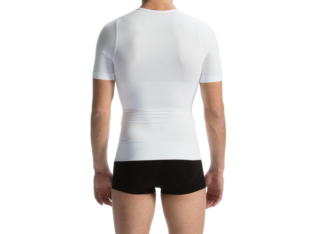Nošení pánského stahovací trika zajišťuje optické zeštíhlení až o jednu či dvě konfekční velikosti. Látka stáhne a zafixuje tuk, který tak během pohybu, vsedě či při předklonu nevytváří tukové záhyby. Silná tkanina zároveň také stabilizuje faldíky v oblasti okraje kalhot, přes které tak nevisí žádné tukové polštářky. Postava působí souměrněji a pevněji.