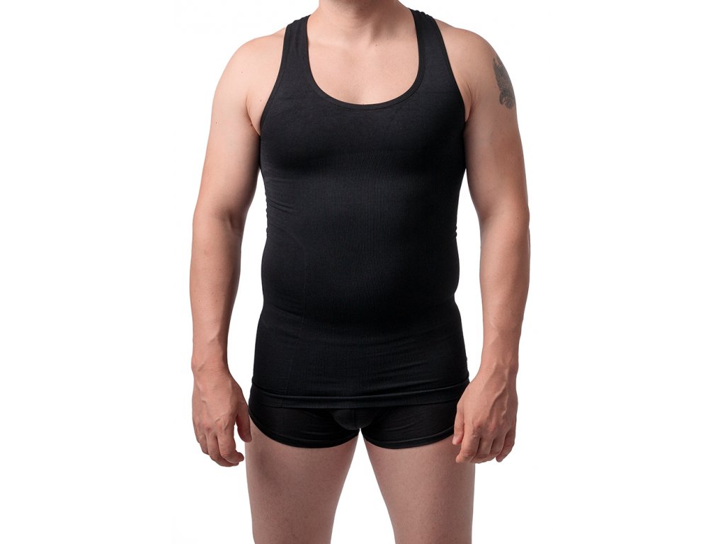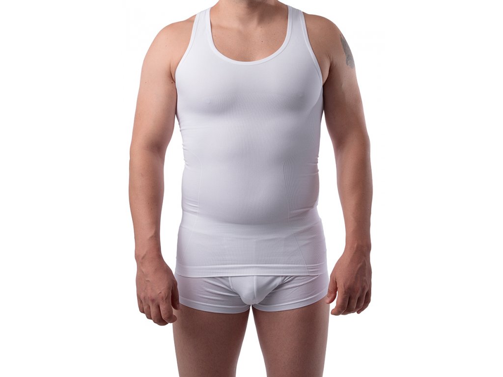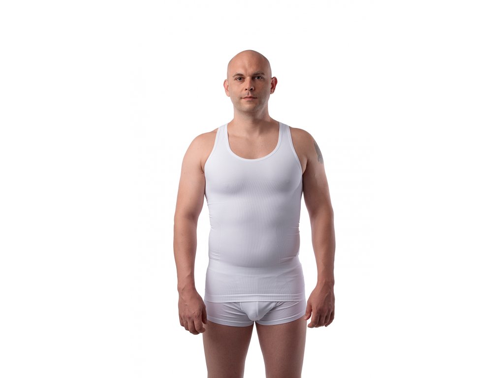 - Pánské stahovací tílko je díky 12% obsahu elastanu výjimečně elastické, takže účinně a okamžitě vytvaruje a vylepší siluetu postavy pod svrchním oblečením, zejména v problémových partiích.
